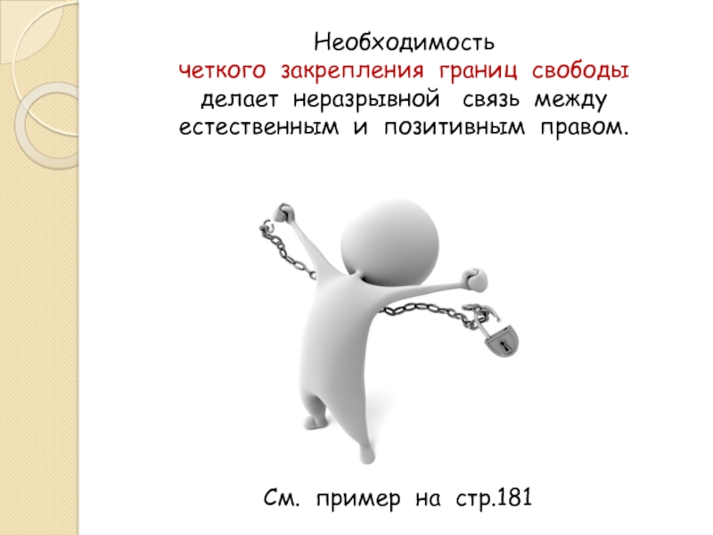 Необходимость  четкого закрепления границ свободы  делает неразрывной  связь между естественным и позитивным правом.См. пример