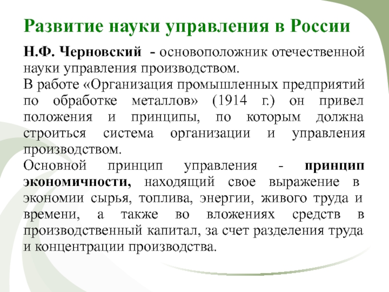 г.) он привел положения и принципы, по которым должна строиться система организации и управления производством.