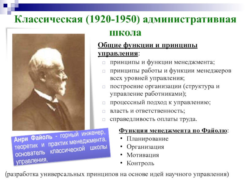 Анри Файоль - горный инженер, теоретик и практик менеджмента, основатель классической школы управления.