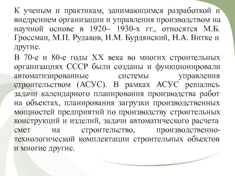 управления производством на научной основе в 1920– 1930-х гг., относятся