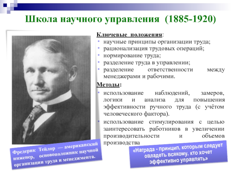 Фредерик Тейлор — американский инженер, основоположник научной организации труда и менеджмента.