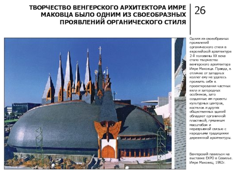 ТВОРЧЕСТВО ВЕНГЕРСКОГО АРХИТЕКТОРА ИМРЕ МАКОВЦА БЫЛО ОДНИМ ИЗ СВОЕОБРАЗНЫХ ПРОЯВЛЕНИЙ ОРГАНИЧЕСКОГО СТИЛЯ