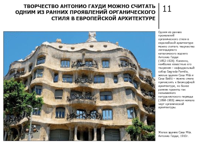 ТВОРЧЕСТВО АНТОНИО ГАУДИ МОЖНО СЧИТАТЬ ОДНИМ ИЗ РАННИХ ПРОЯВЛЕНИЙ ОРГАНИЧЕСКОГО СТИЛЯ В ЕВРОПЕЙСКОЙ АРХИТЕКТУРЕ