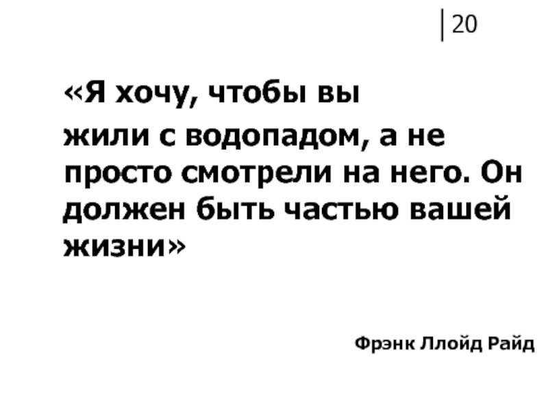 «Я ХОЧУ, ЧТОБЫ ВЫ ЖИЛИ С ВОДОПАДОМ, А НЕ ПРОСТО СМОТРЕЛИ НА НЕГО. ОН ДОЛЖЕН БЫТЬ ЧАСТЬЮ ВАШЕЙ ЖИЗНИ.»