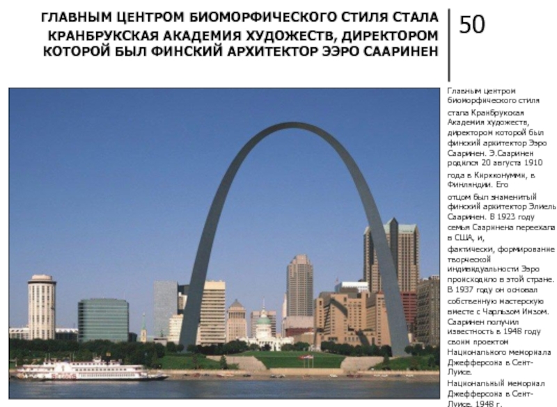 РАЗВИТИЕ АРХИТЕКТУРНОЙ КОМПОЗИЦИИ СААРИНЕН УПОДОБЛЯЛ РАЗВИТИЮ БИОЛОГИЧЕСКОГО ОРГАНИЗМА