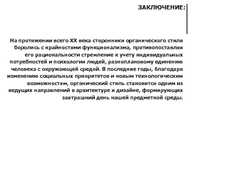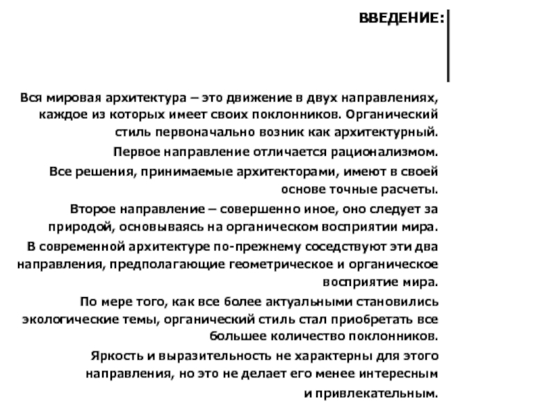 ЧЕРТЫ ОРГАНИЧЕСКОЙ АРХИТЕКТУРЫ, ПРИСУЩЩИЕ РАННИМ ПРОЕКТАМ ТАК НАЗЫВАЕМОГО НАТУРАЛИСТСКОГО ПЕРИОДА:
