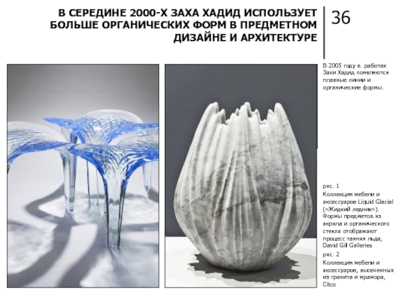 В СЕРЕДИНЕ 2000-Х ЗАХА ХАДИД ИСПОЛЬЗУЕТ БОЛЬШЕ ОРГАНИЧЕСКИХ ФОРМ В ПРЕДМЕТНОМ ДИЗАЙНЕ И АРХИТЕКТУРЕ