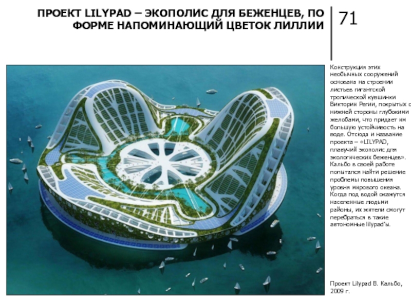 ПРОЕКТ LILYPAD – ЭКОПОЛИС ДЛЯ БЕЖЕНЦЕВ, ПО ФОРМЕ НАПОМИНАЮЩИЙ ЦВЕТОК ЛИЛЛИИ