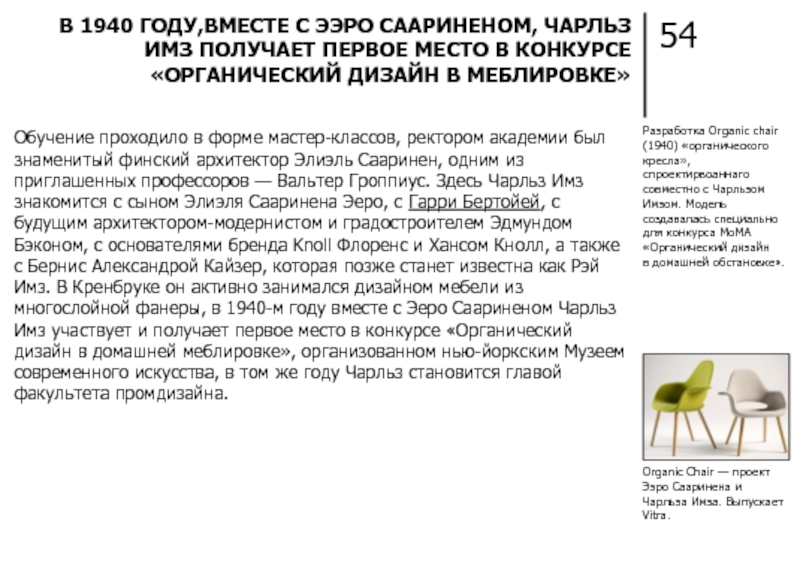 Organic Chair — проект Ээро Сааринена и Чарльза Имза. Выпускает Vitra.
