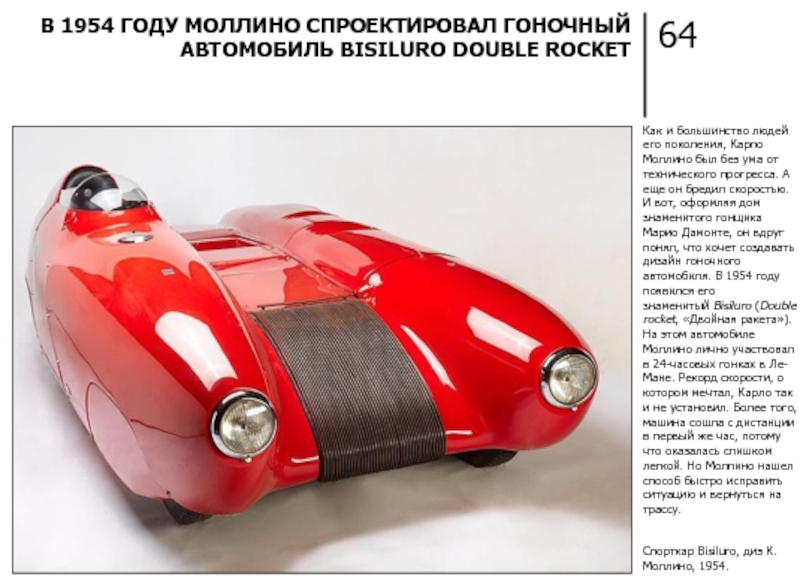 Спорткар Bisiluro, диз К. Моллино, 1954.