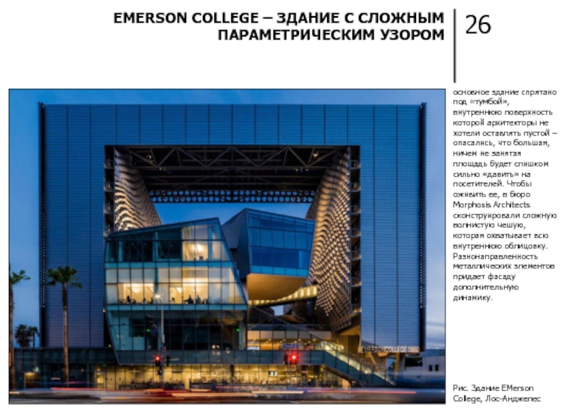 В ЛОС-АНДЖЕЛЕСЕ ПАРАМЕТРИКУ ИСПОЛЬЗОВАЛИ ДЛЯ ОДНОГО ИЗ ФАСАДОВ EMERSON COLLEGE