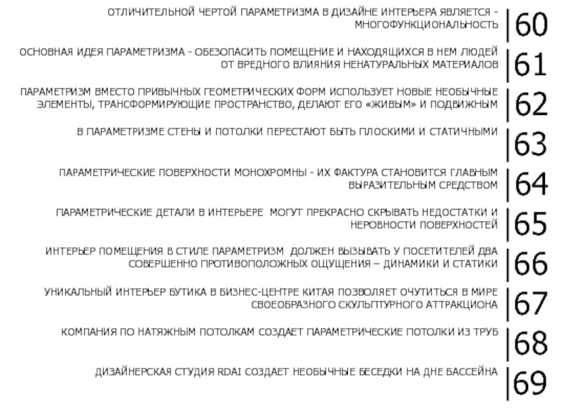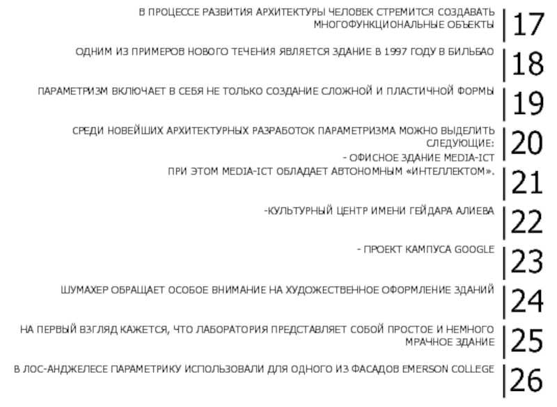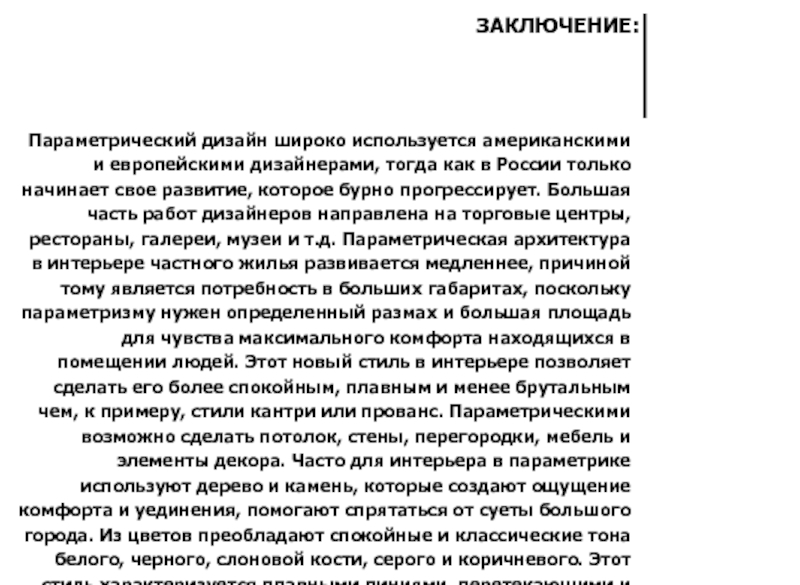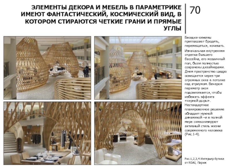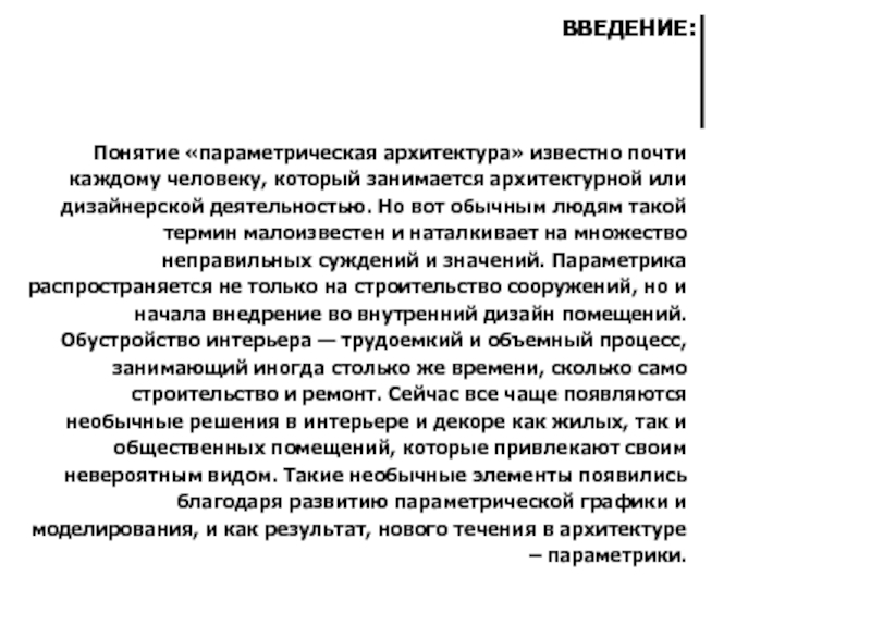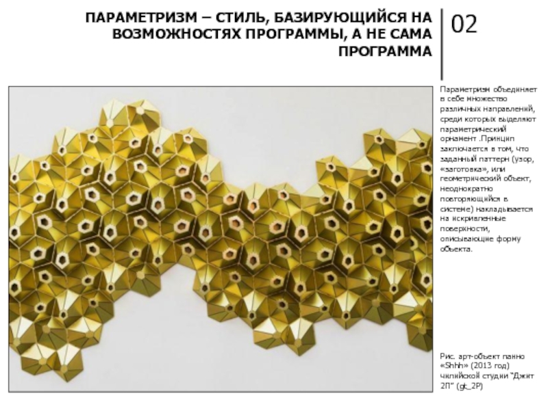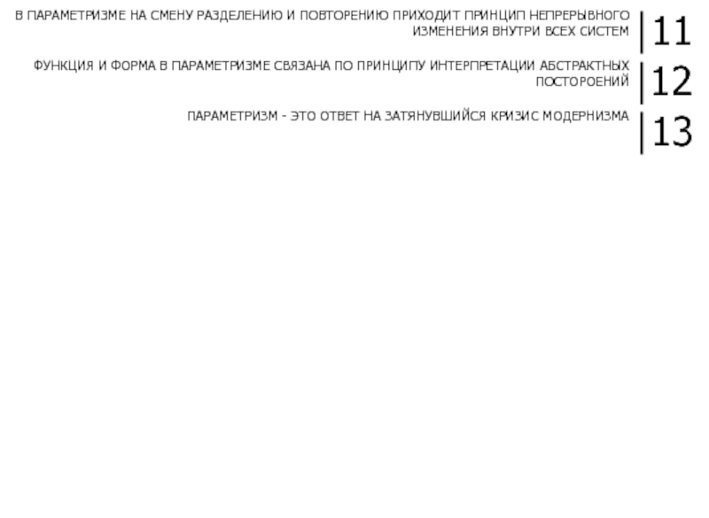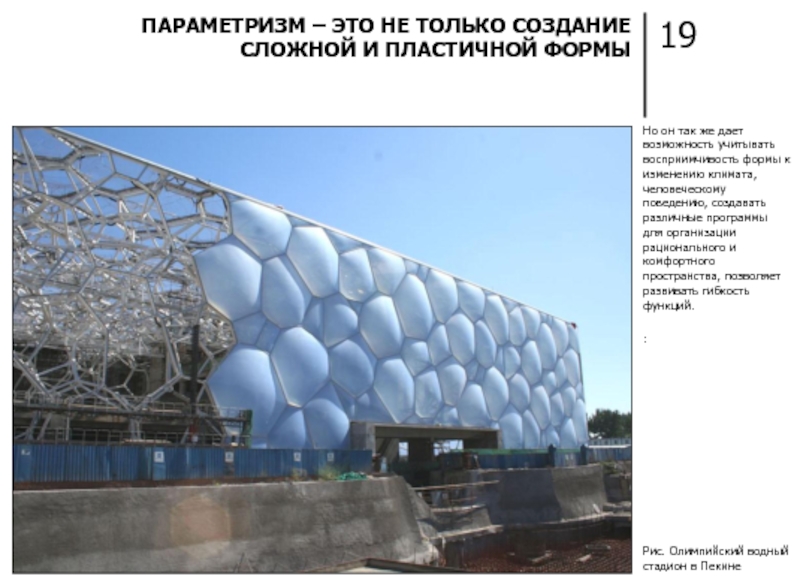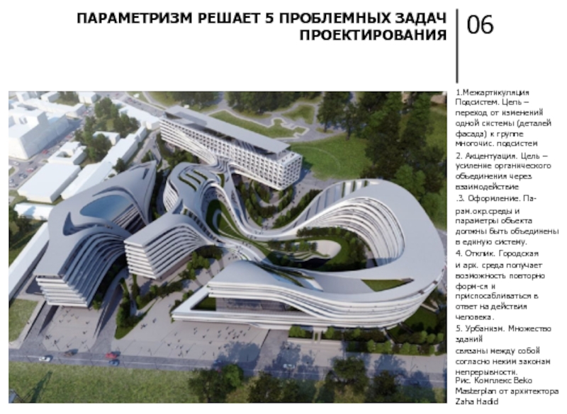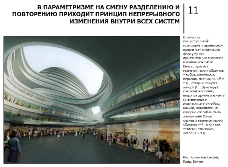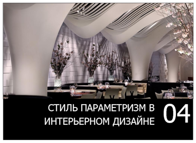 ПАРАМЕТРИЗМ ВМЕСТО ПРИВЫЧНЫХ ГЕОМЕТРИЧЕСКИХ ФОРМ ИСПОЛЬЗУЕТ НОВЫЕ НЕОБЫЧНЫЕ ЭЛЕМЕНТЫ, ТРАНСФОРМИРУЮЩИЕ ПРОСТРАНСТВО, ДЕЛАЮТ ЕГО «ЖИВЫМ» И ПОДВИЖНЫМ