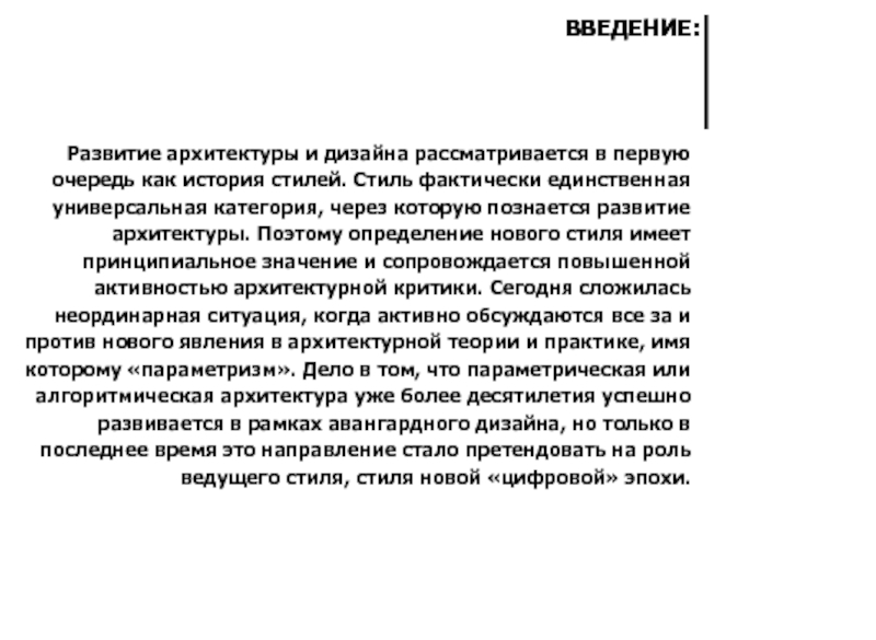 ПАРАМЕТРИЗМ - ЭТО ОТВЕТ НА ЗАТЯНУВШИЙСЯ КРИЗИС МОДЕРНИЗМА