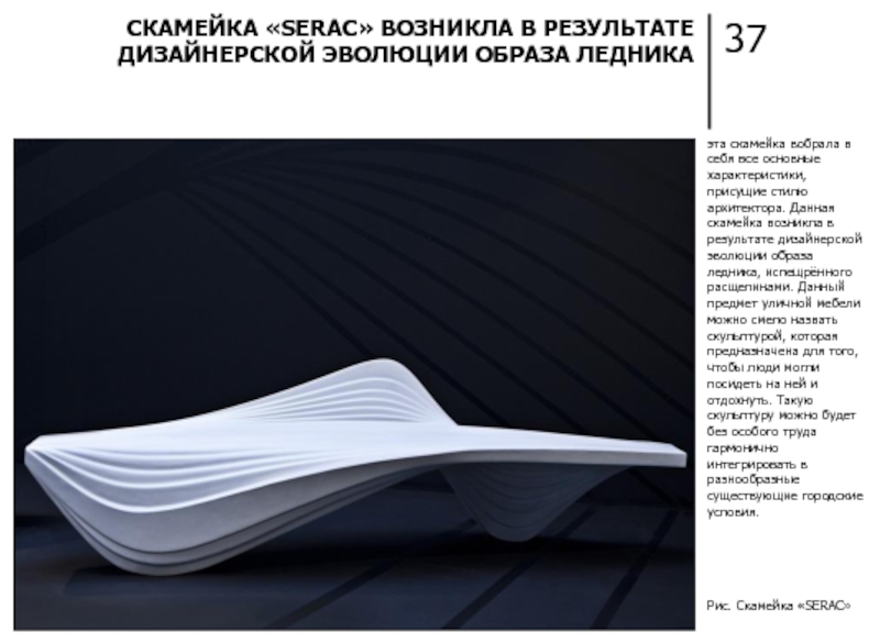 СКАМЕЙКА «SERAC» ЗАХА ХАДИТ ВОЗНИКЛА В РЕЗУЛЬТАТЕ ДИЗАЙНЕРСКОЙ ЭВОЛЮЦИИ ОБРАЗА ЛЕДНИКА
