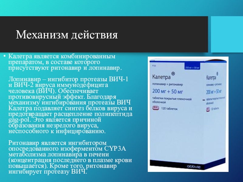 Калетра является комбинированным препаратом, в составе которого присутствуют ритонавир