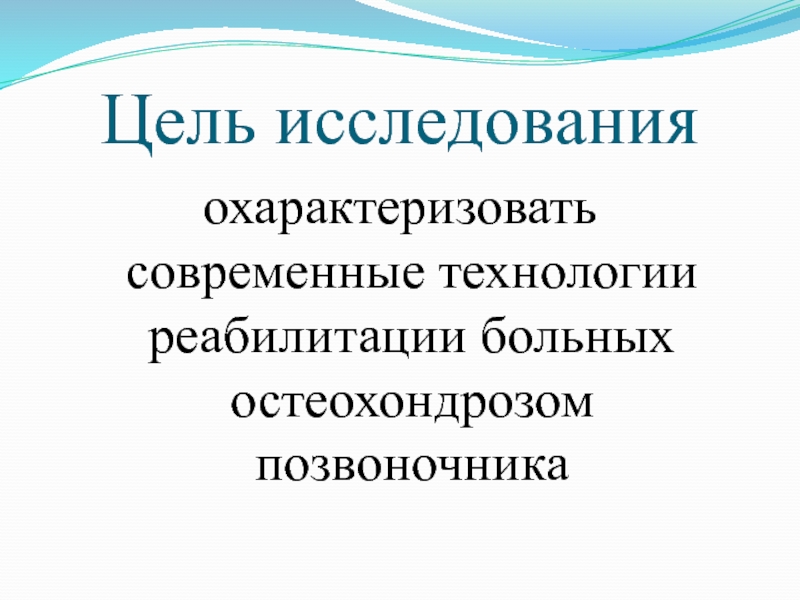 Цель исследованияохарактеризовать современные технологии реабилитации больных остеохондрозом позвоночника
