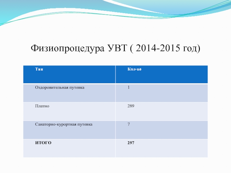 Слайд 16Физиопроцедура УВТ ( ноябрь 2014-2015 год)