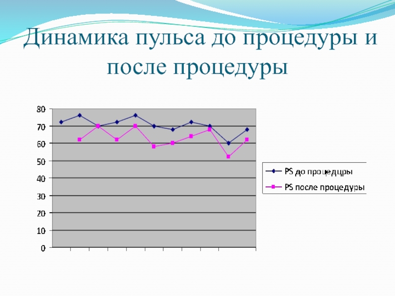 Слайд 20Динамика пульса до процедуры и после процедуры