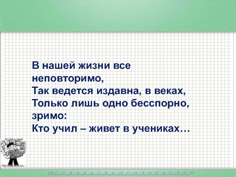 учитель - помощник, советчик, воспитатель ещё неокрепших юных сердец, защитник, стремящийся уберечь своих воспитанников в водовороте жизни