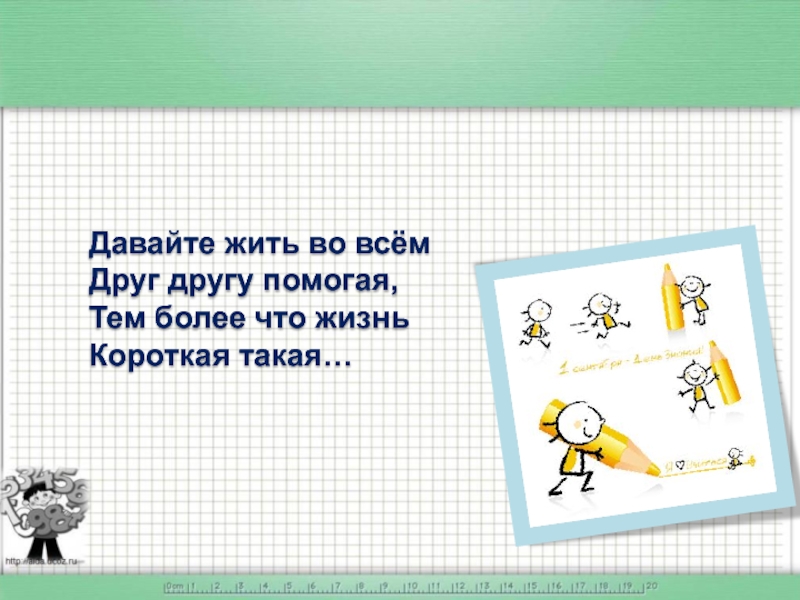 Слайд 17Давайте жить во всём