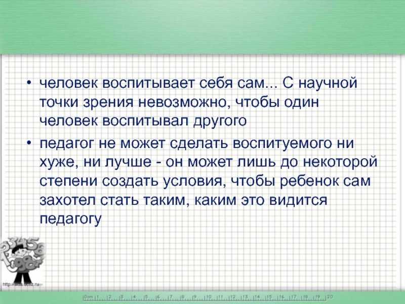 Слайд 7человек воспитывает себя сам... С научной точки зрения невозможно, чтобы