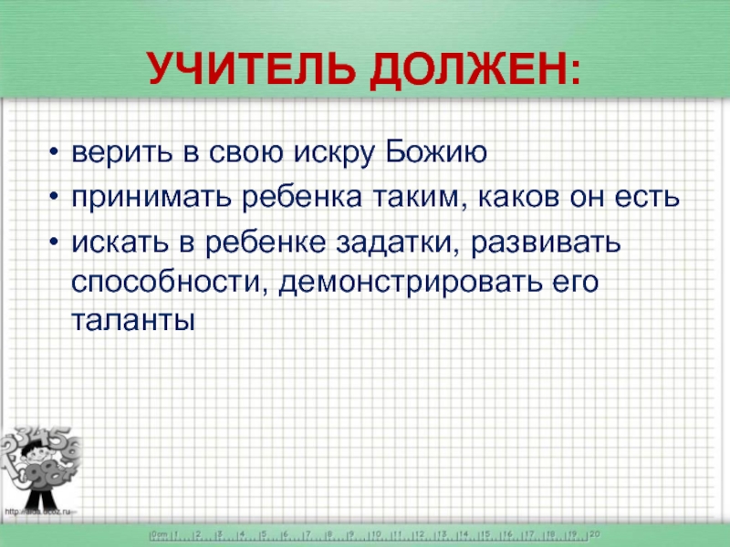 Слайд 18УЧИТЕЛЬ ДОЛЖЕН:
