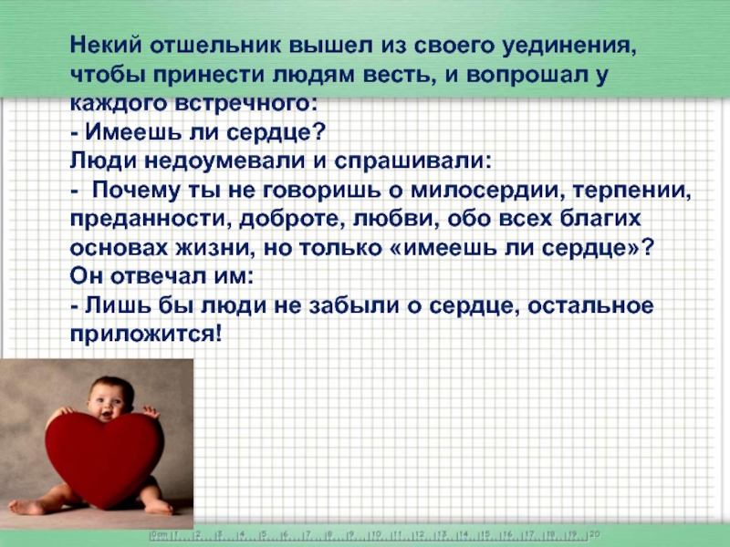 Слайд 22Некий отшельник вышел из своего уединения, чтобы принести людям весть,