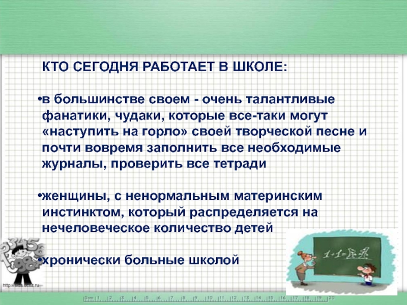 Слайд 5КТО СЕГОДНЯ РАБОТАЕТ В ШКОЛЕ:
