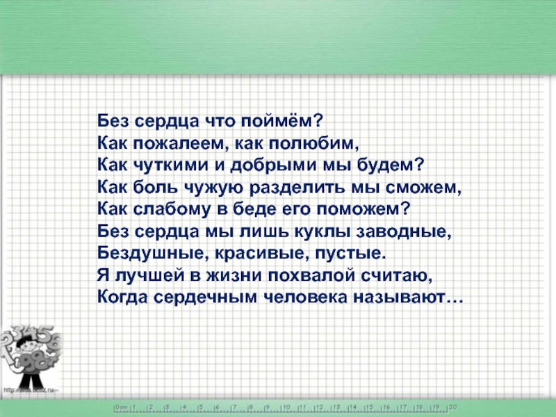 Слайд 23Без сердца что поймём?