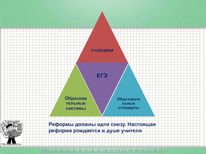 Слайд 3Реформы должны идти снизу. Настоящая реформа рождается в душе учителя
