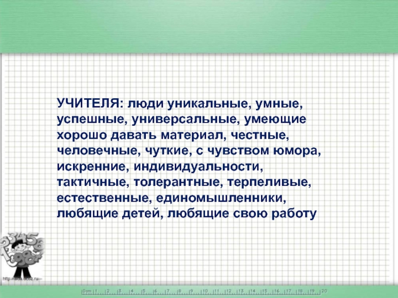 Слайд 25УЧИТЕЛЯ: люди уникальные, умные, успешные, универсальные, умеющие хорошо давать материал,
