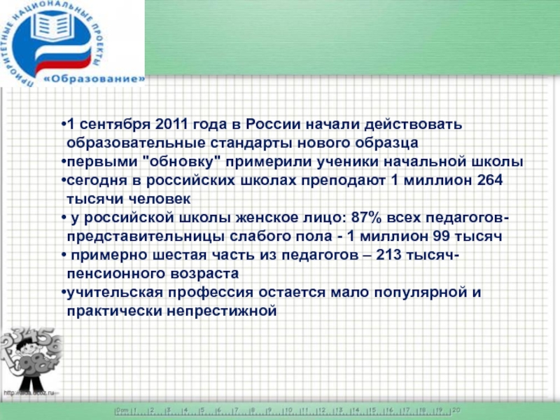 Слайд 41 сентября 2011 года в России начали действовать образовательные стандарты