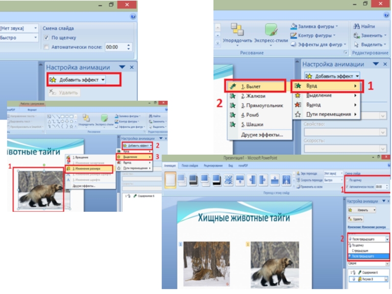 4. слайд – фрагмент презентации, в пределах которого производится работа над ее объектами. Слайд имеет параметры: вид фона, цвет фона, вид перехода, звук и эффекты анимации.