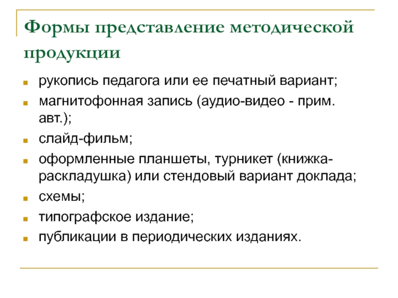 результата методической деятельности, способ выражения и распространения методических знаний.