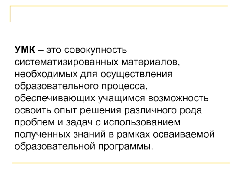 Слайд 3УМК – это совокупность систематизированных материалов, необходимых для осуществления образовательного