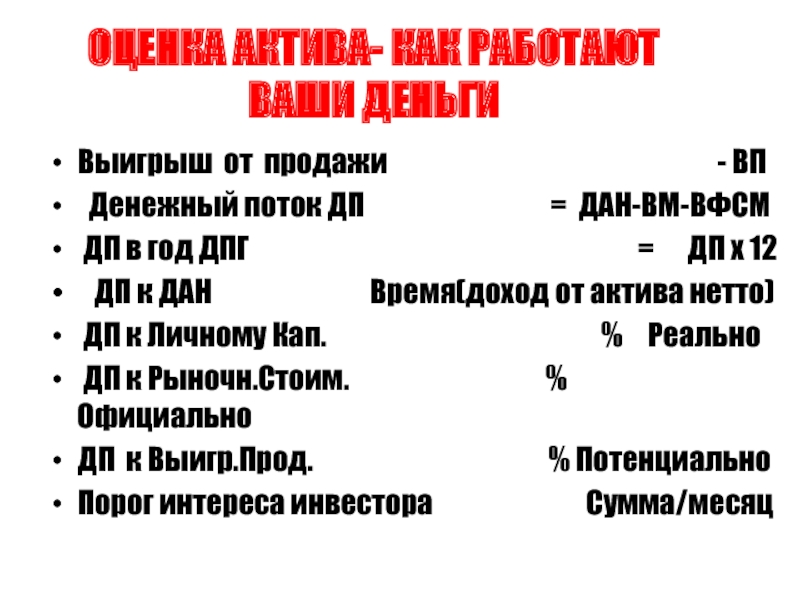 ОЦЕНКА АКТИВА- КАК РАБОТАЮТ ВАШИ ДЕНЬГИ