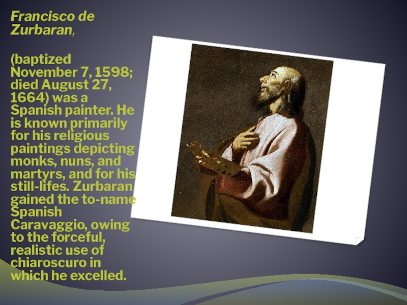 Слайд 3Francisco de Zurbaran,