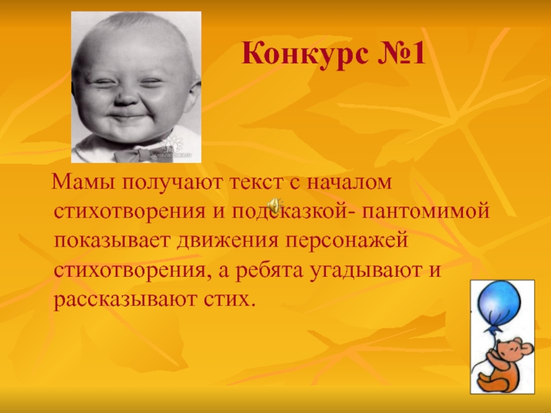 Мамы получают текст с началом стихотворения и подсказкой- пантомимой показывает
