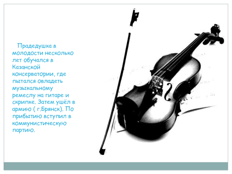 Слайд 4Прадедушка в молодости несколько лет обучался в Казанской консерватории, где