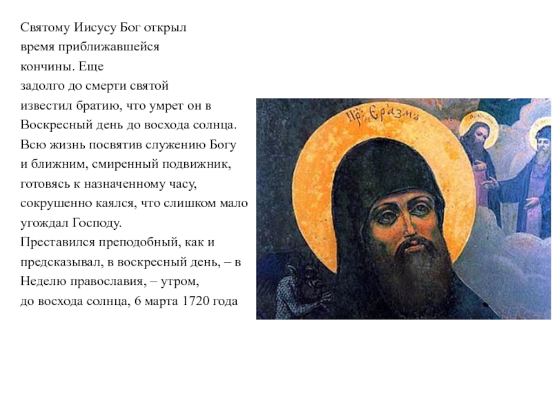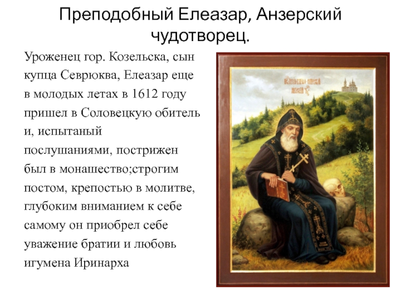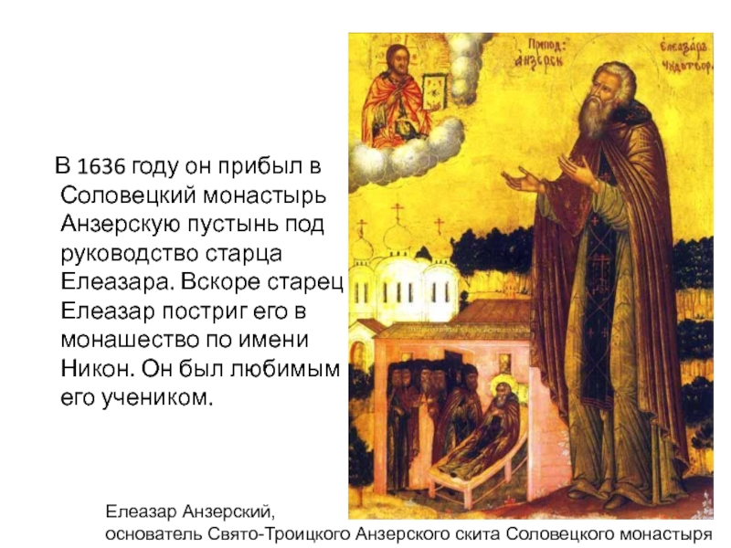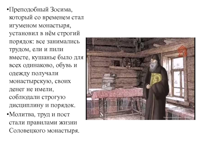 Слайд 15Преподобный Зосима, который со временем стал игуменом монастыря, установил в
