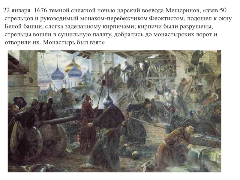 веке «соловецкий монах» - тип крестьянина – хозяина. Он зороко блюдёт свои интересы, работает и сам , не отказываясь ни от косы, лопаты и снасти.Он готов на всё ради обители.