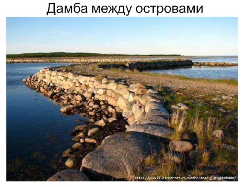 Слайд 6Между островами и побережьем Карелии примерно 60 км. Расстояние до