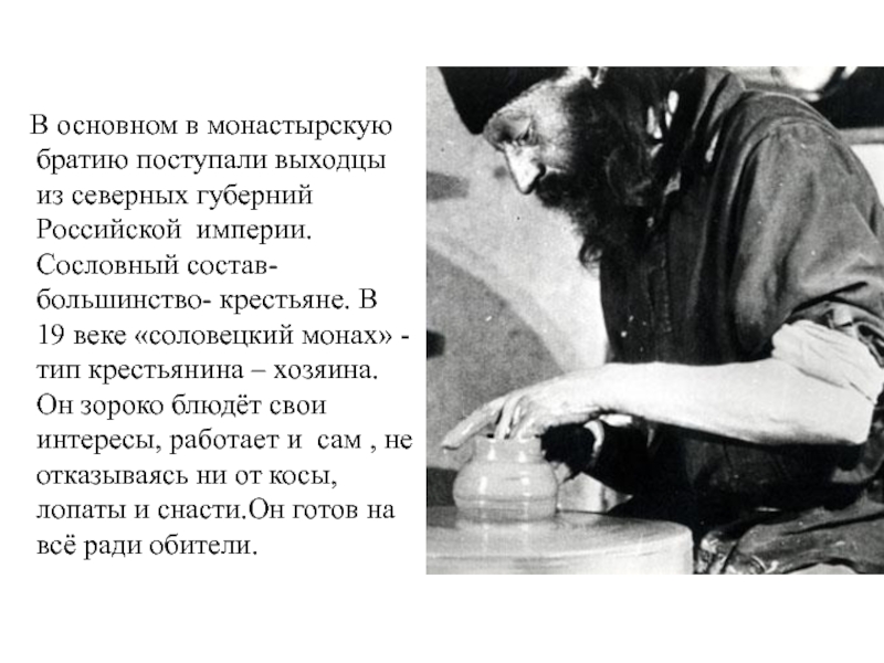 Слайд 57 В основном в монастырскую братию поступали выходцы из