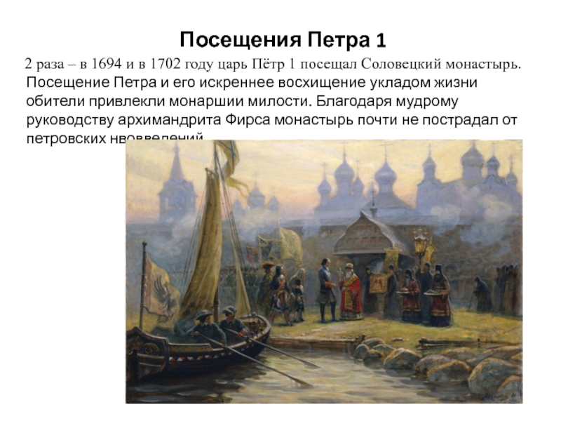 подчинению её власти светской, к подрыву авторитета духовенства, к падению веры и благочестия,как среди интеллигенции, так и среди народа. Но всё же монастырь сохранил дух и уклад древних времён и оставался духовным центром Поморья.