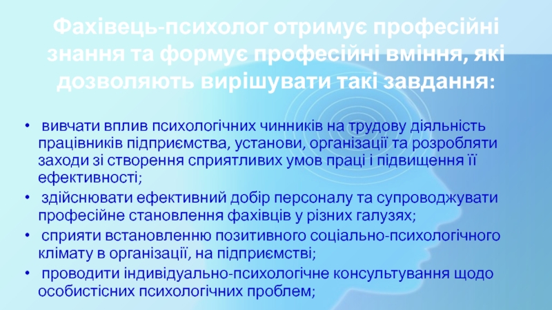 Слайд 8Фахівець-психолог отримує професійні знання та формує професійні вміння, які дозволяють