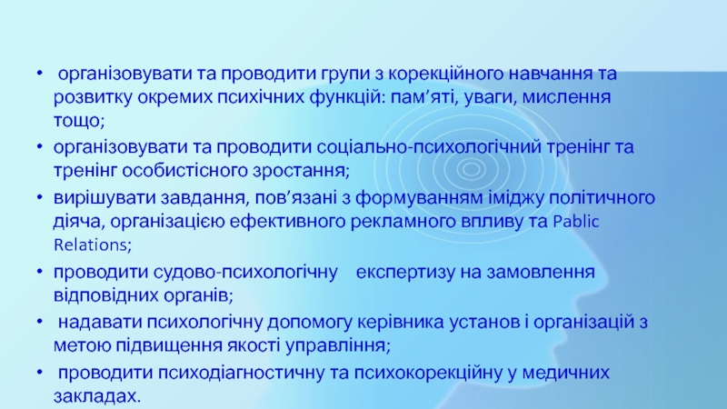 надавати психологічну допомогу керівника установ і організацій з метою підвищення якості управління;