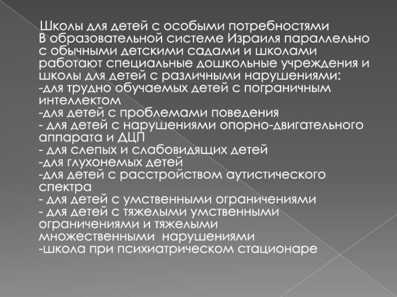 Школы для детей с особыми потребностями В образовательной системе Израиля параллельно с обычными детскими