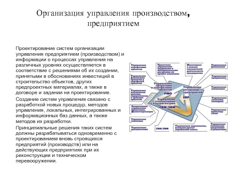 Слайд 12Проектирование организации и условий труда работников, управление производством и предприятием