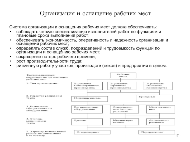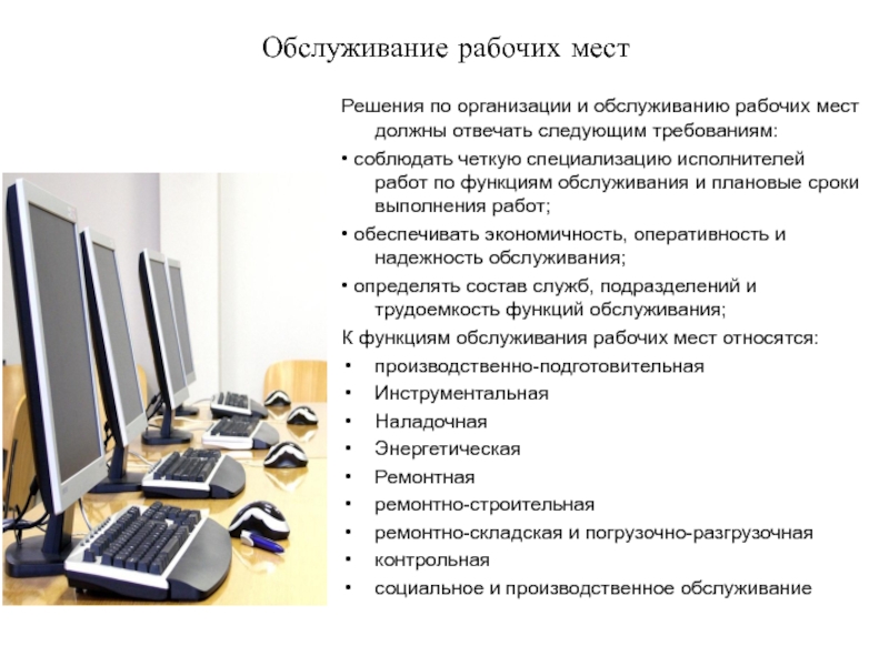 обеспечивать экономичность, оперативность и надежность организации и оснащения рабочих мест;