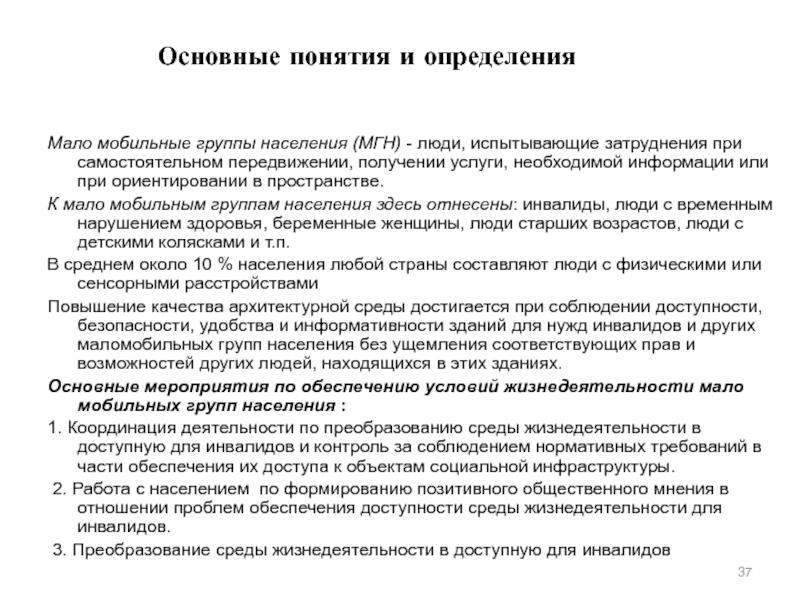 Проектирование мероприятий по обеспечению условий жизнедеятельности мало мобильных групп населения